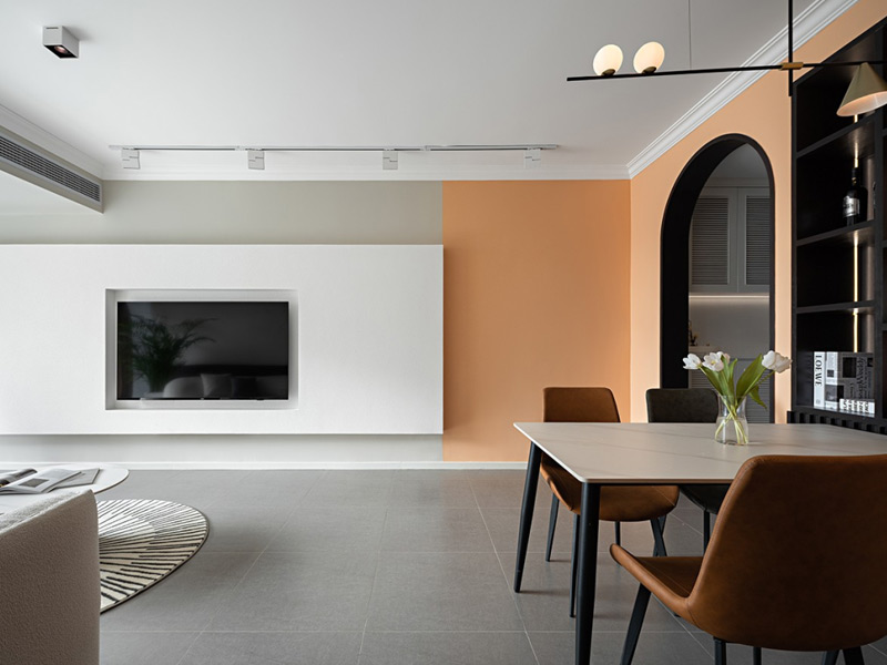 双眼皮吊顶是在空间顶部用双层石膏板做错层处理,呈现出双眼皮一样的视觉效果,既简洁又灵动。双眼皮可以根据墙面乳胶漆的颜色做相应的调整,看起来会更加和谐。