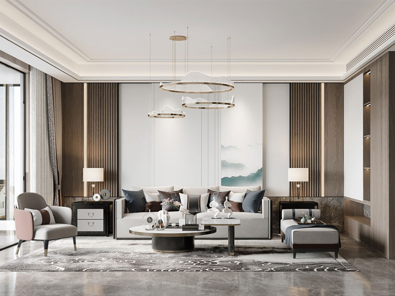 本案风格定位于新中式,简单素雅的空间色彩搭配与新中式的细节融于一体,富有意境与韵味,铺陈出别有风致的风格特点。
