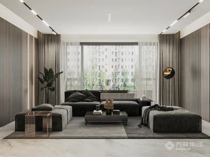 融合轻奢元素,以中性色调为基础,通过材质拼接、灯光设计与艺术软装营造出统一且富有层次的空间氛围。